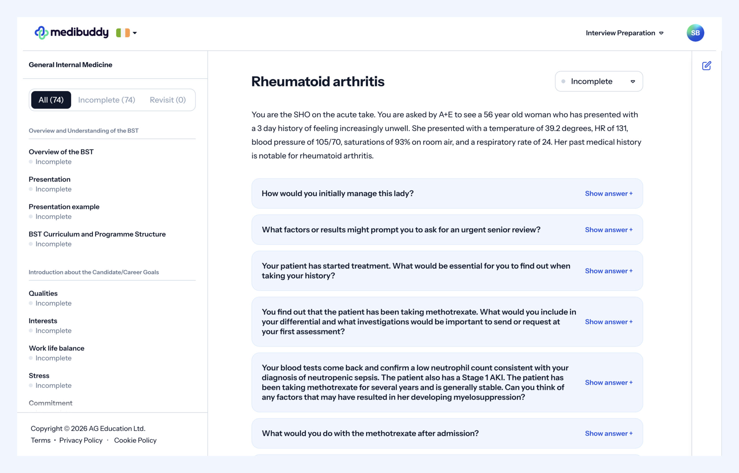 Below is an example of a clinical scenario from our BST GIM Question Bank, designed to help you practise the types of questions you can expect on interview day.